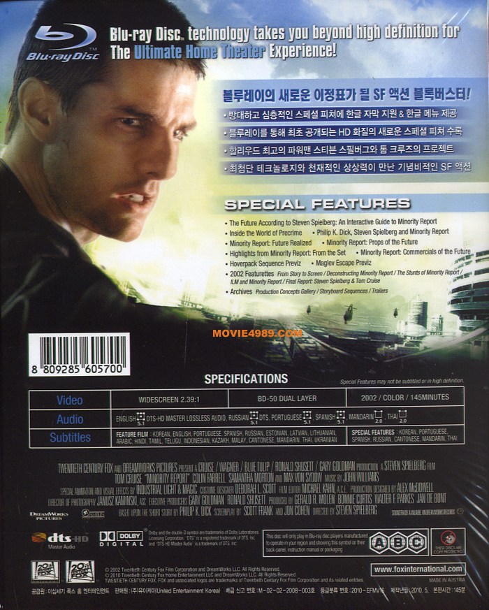 Minority Report on ka veel eraldi küljelt sisse pistetavas läikpaberist karbis. Ka sellega on samad lood - filmi sisu kirjeldus hiroglüüfides, muud kirjad inglise keeles. Sellel eraldi ümbrisel ja ka kõigil plaadiümbristel on ka märgitud, et on ABC regiooni plaat.